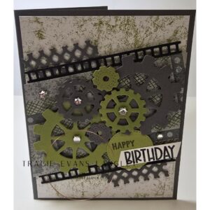 • Scraps of Basic Black, Basic Gray and Old Olive for die cutting the gears on the second card
